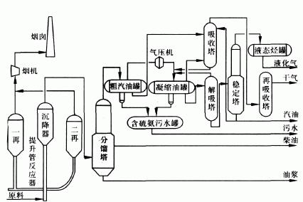 反應(yīng)再生系統(tǒng):提升管反應(yīng)器、再生器、催化劑罐、主風(fēng)機(jī)、煙氣輪機(jī)、余熱鍋爐